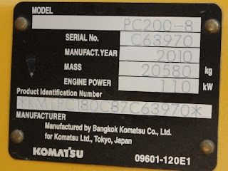 Sebagai Contoh Serial Kode Plat Komatsu gambar diatas: